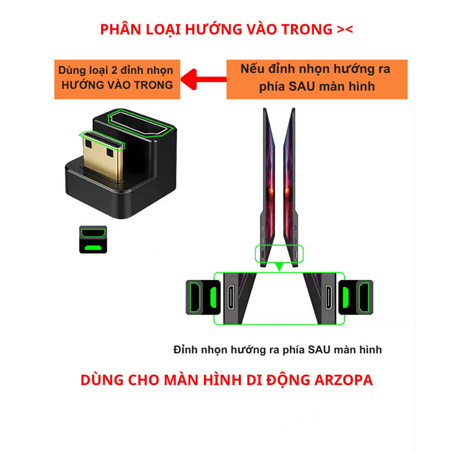 - Mini HDMI to HDMI ><: Giắc có hai đầu nhọn hướng vào trong, phù hợp với các thiết bị đặc biệt.