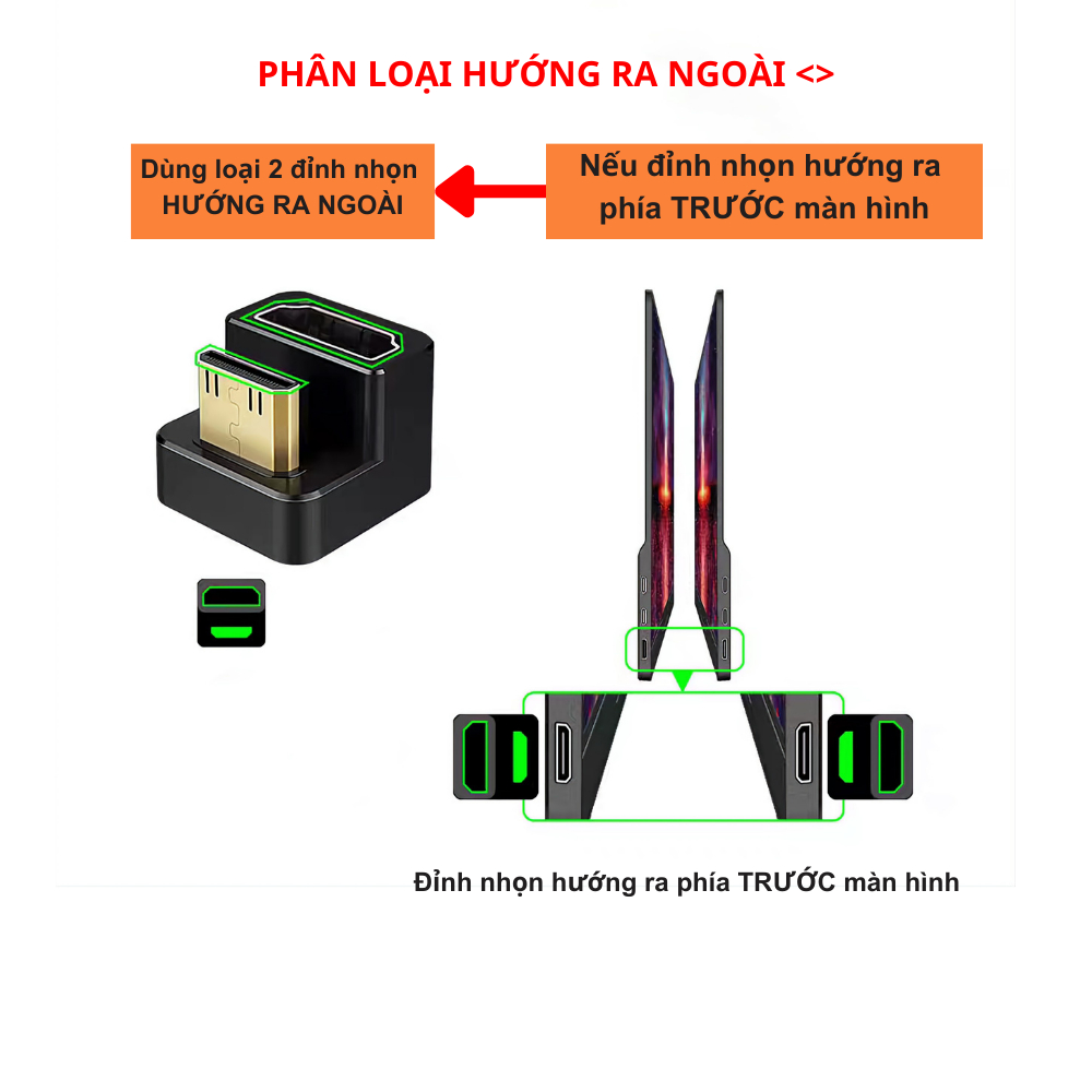 - Mini HDMI to HDMI <>: Giắc có hai đầu nhọn hướng ra ngoài, đáp ứng nhu cầu kết nối linh hoạt hơn.