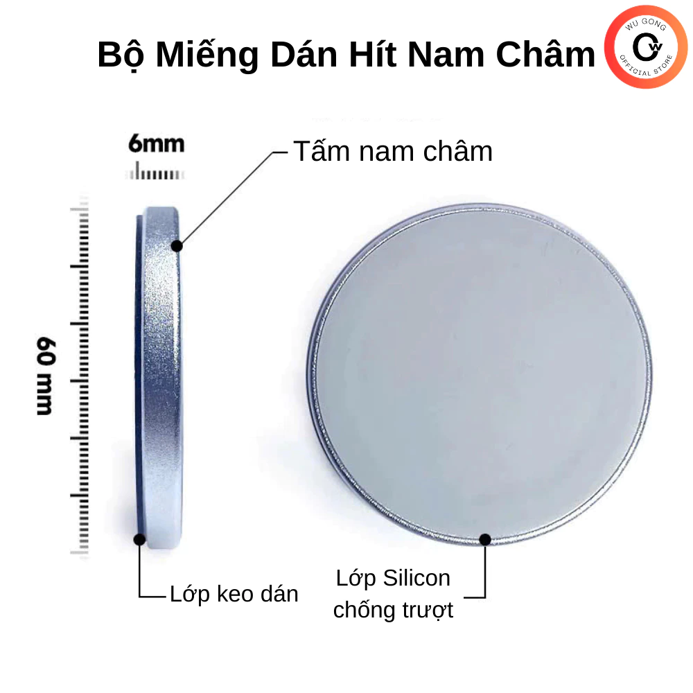 Set Miếng Dán Nam Châm Điện Thoại, Máy Tính Bảng, Màn Hình. Bộ Miếng Dán Nam Châm Tròn 6cm Lực Hít Mạnh
